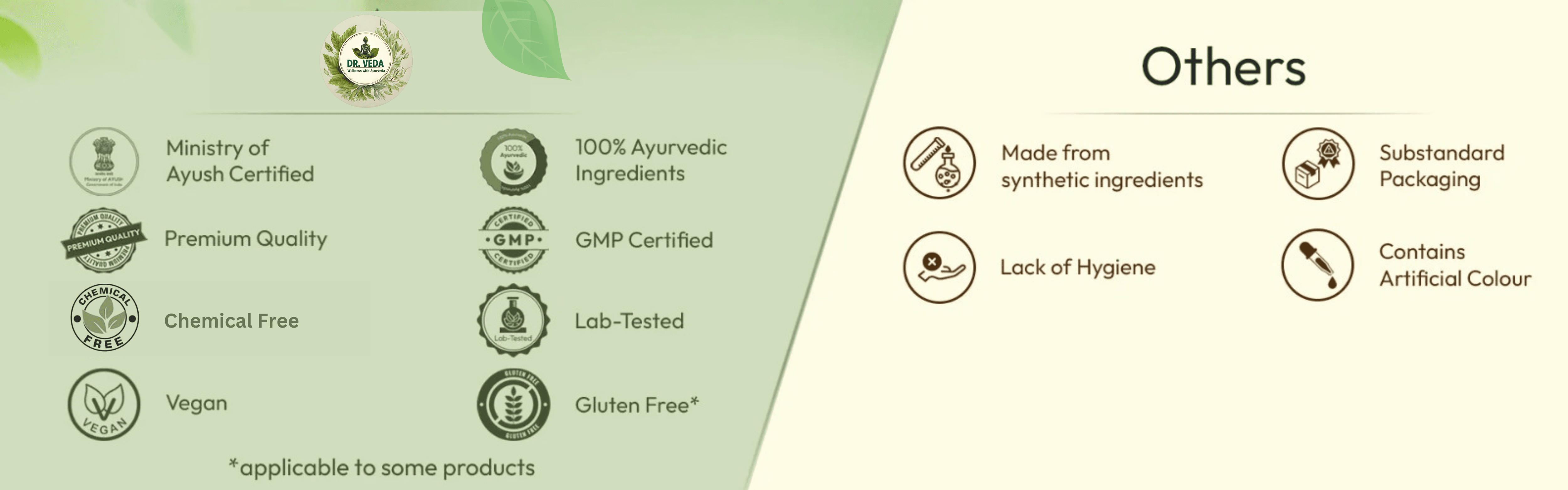 We at Dr. Veda adhere to these principles, offering products that are tailored to balance doshas and support holistic well-being.
